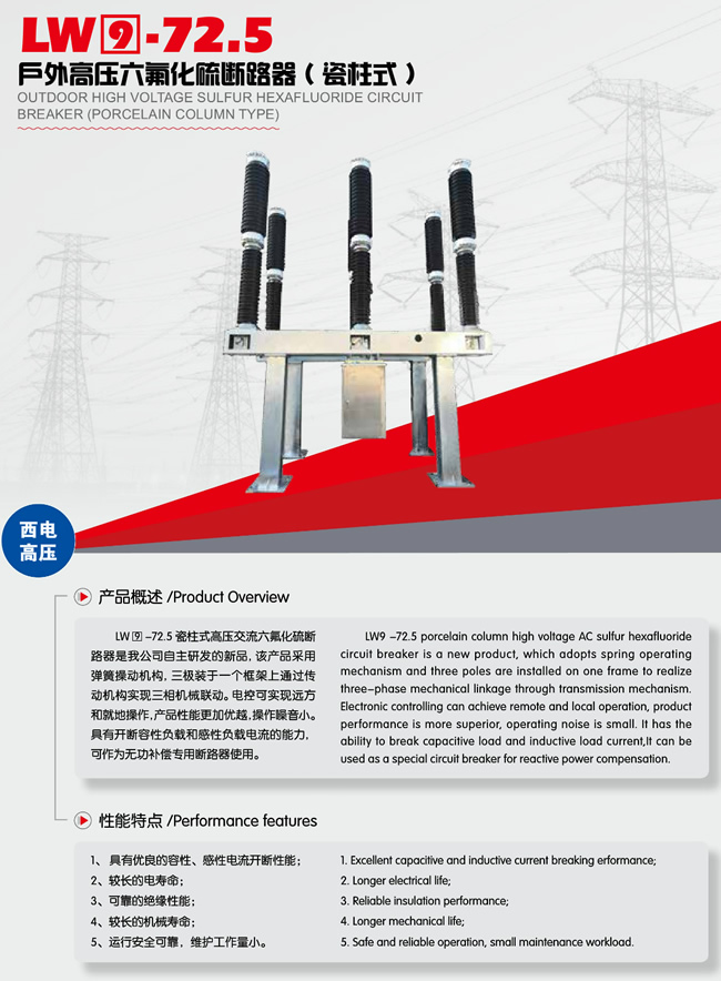 LW9-72.5户外高压六氟化硫断路器(瓷柱式)