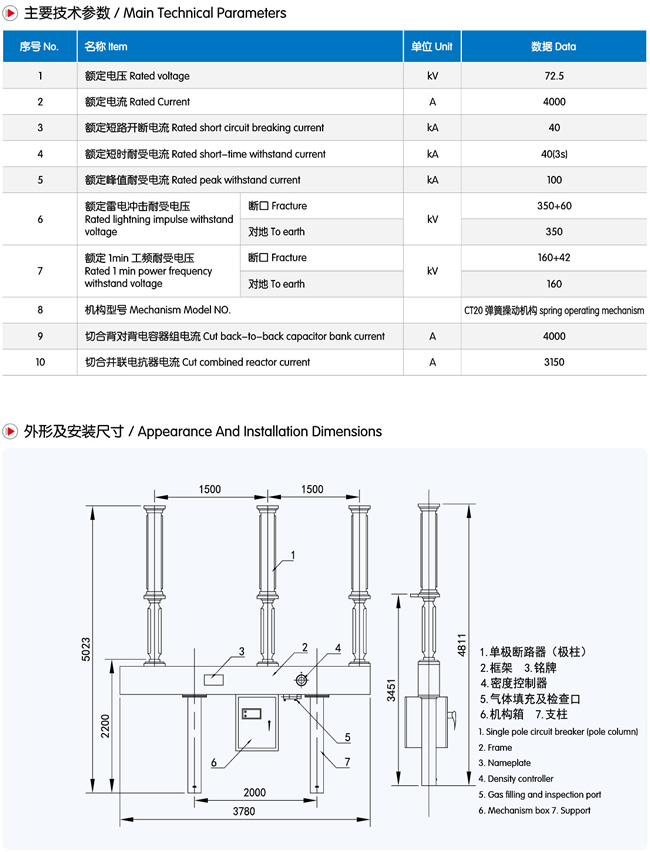 户外高压六氟化硫断路器系列